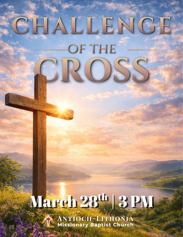 Challenge of the Cross + Add to Google Calendar + iCal / Outlook export 00 days 00 hours 00 minutes 00 seconds Date Mar 28 2026 Time 3:00 pm Location Antioch-Lithonia Missionary Baptist Church 2152 Rock Chapel Rd, Lithonia, GA 30058 Category Featured Main Organizer Worship & Performing Arts Share this event