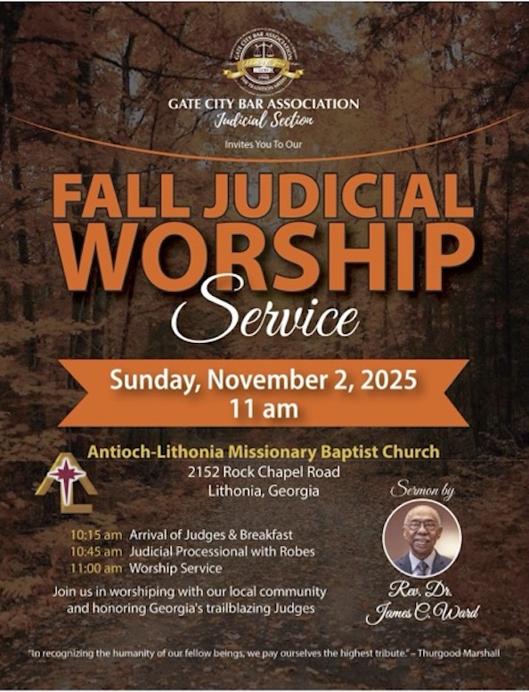 Fall Judicial Worship + Add to Google Calendar + iCal / Outlook export 00 days 00 hours 00 minutes 00 seconds Date Nov 02 2025 Time 11:00 am Location Antioch-Lithonia Missionary Baptist Church 2152 Rock Chapel Rd, Lithonia, GA 30058 Category Featured Main Share this event