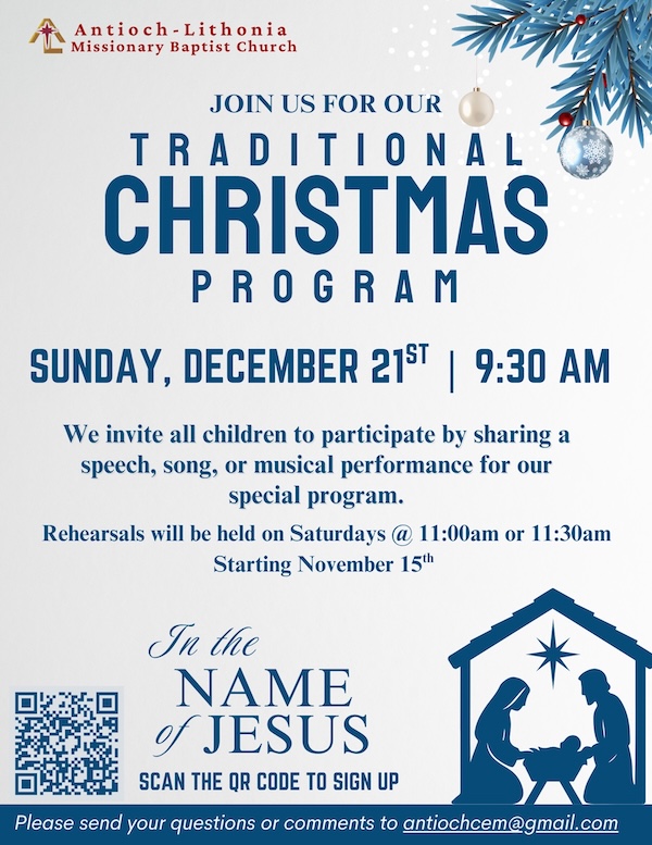 We are excited to celebrate the birth of Christ with our Traditional Christmas Program on Sunday, December 21st at 9:30am.