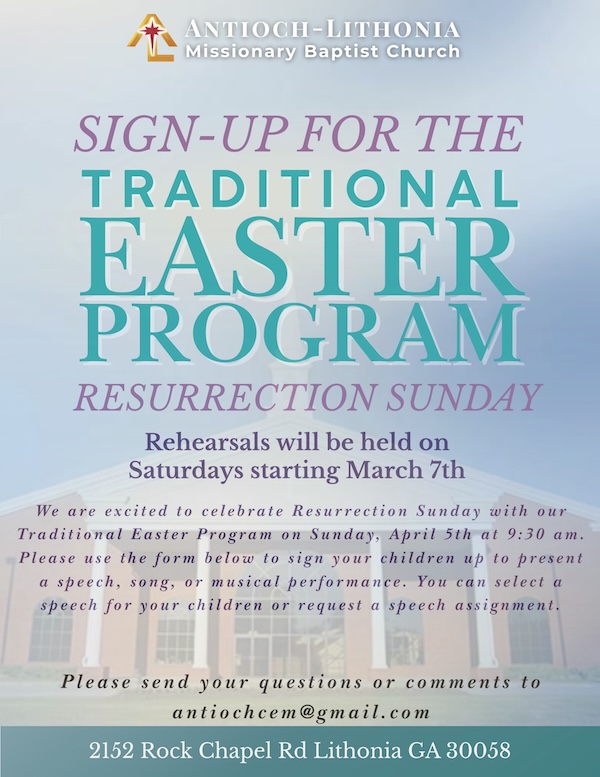 Traditional Easter Program Sign-Up + Add to Google Calendar + iCal / Outlook export 00 days 00 hours 00 minutes 00 seconds Date Mar 01 - 28 2026 Category Featured Main Share this event